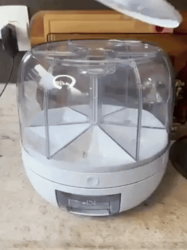 Gira hasta el compartimento que necesitas y presiona el botón de salida para dispensar la cantidad.